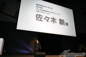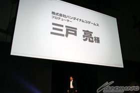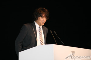Producer Ryo Mito of Namco Bandai Games, taking the stage, commented that the goal of Gundam AGE was to fascinate a new generation of children with a new world of Gundam. A variety of plans are in the works for both the game and the anime projects, intended to appeal to a wide age range of nontraditional fans.