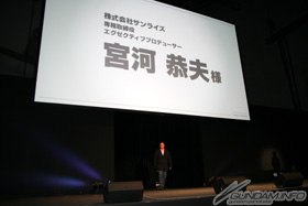 Next are Executive Producer Yasuo Miyakawa and Planning Producer Shin Sasaki from Sunrise, who comment on the beginnings of Gundam AGE and the anime production.