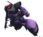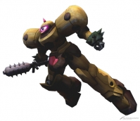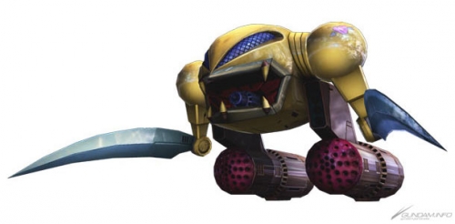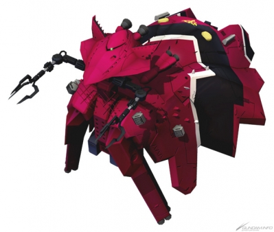 A Principality of Zeon experimental mobile armor. One of the first generation of MA testbeds, it was designed for high speed and high firepower. Equipped with a scattering mega particle cannon, compound optical sensors, and scythelike claws which support heat hawks, it definitely gives off the feel of a test unit.