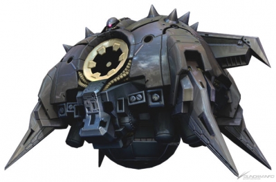 A Principality of Zeon test siege mobile armor, planned for use in an assault on Jaburo. Intended to complete atmospheric reentry directly over Jaburo, it is equipped with a Minovsky Craft flight system and a mega particle cannon.