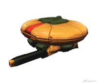 A Principality of Zeon experimental support mobile armor. It is designed to support front-line MSes, MAs, and mobile pods with ammunition, propellant, and emergency repairs. Its 'Skirt Shell', consisting of an armor booster and a resupply unit, is based on the MA Bigro.