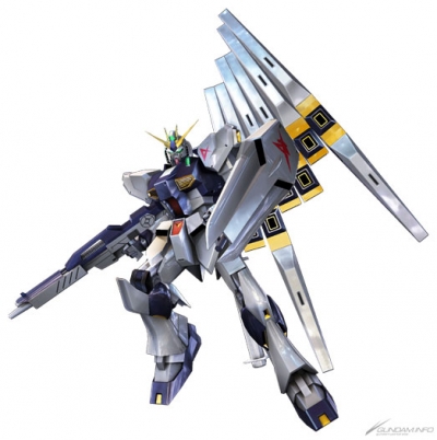 A refined iteration of the Psyco Gundam. Equipped with Psycommu weapons such as wire-guided beam swords and reflector bits, as well as over twenty mega particle cannons, its firepower is overwhelming. Its Psycommu System includes test data from its pilots.