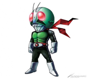Kamen Ridfer battles the evil conspiracy Shocker. Also known as '#1 with the moves', his powerful Rider Kick is stunning. His battle BGM is 'Kamen Rider Tojo'.