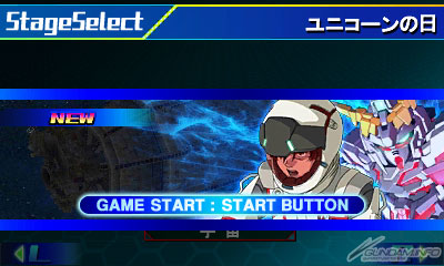 本作では、プレイヤー自身が攻略するステージを自由に選択しながら遊ぶことができる。ゲーム開始時に選べるステージは『機動戦士ガンダムUC』を舞台にした「ユニコーンの日」と、『機動戦士ガンダムAGE』を舞台にした「ノーラ崩壊」の2つがあり、どちらのルートを選ぶかは、プレイヤー次第。