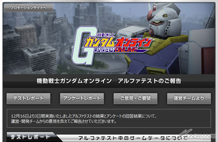 バンダイナムコオンラインにて、現在開発中のWindows®専用PCオンラインゲーム「機動戦士ガンダムオンライン」では、昨年末に行われた「アルファテスト」のアンケート結果などをまとめたレポートを、本日公式サイトにて公開した。