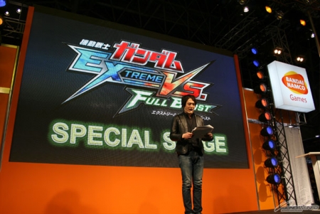 2月17日(金)・18日(土)の2日間にわたって開催された「AOU2012 アミューズメント・エキスポ」。その一般公開日である2月18日に、会場内のバンダイナムコゲームス メインステージにて、4月上旬稼働予定の「ガンダムVS.」シリーズ最新作「機動戦士ガンダム エクストリームバーサス フルブースト」のスペシャルステージが実施された。
