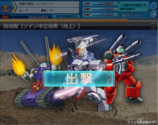 ▲局地戦や戦闘で資金を貯めよう!合成でキャラクターや機体を強化して、スタンプを貰って褒賞をゲッ ト!