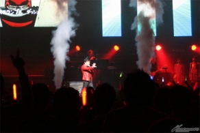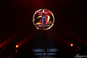 ▲水木氏のオープニングライブ。「空飛ぶマジンガーZ」が披露され会場のボルテージが一気に上がった。ステージでは、なんと水木氏が宙を舞う演出が行われ、空中に大きな「Z」の文字を描いた。