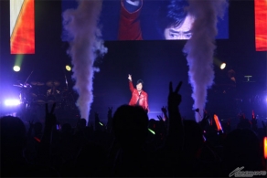 ▲水木氏&JAM Projectの「鋼の救世主」がスペシャルライブの最後を飾るが、曲終了後の大アンコールを受け水木氏と影山氏が「鋼の魂」を熱唱した。