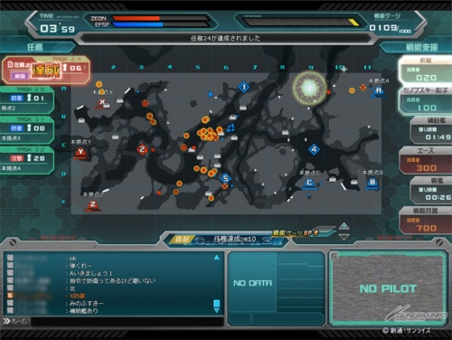 これは、ミノフスキー粒子散布範囲を指揮官が指定することで、効果発動エリア内は一定時間、敵味方ともにレーダー障害を発生させてミニマップが使用不能にすることができる。