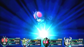 ▲本作では「ガンダム」、「ウルトラマン」、「仮面ライダー」、「メタルヒーロー」シリーズからの各3体のキャラをアイテムで切り替えながら戦っていく。