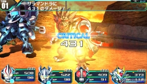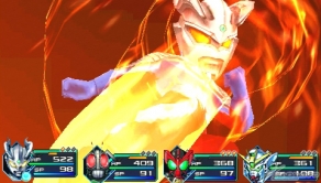 ニンテンドー3DSとPSP®のマルチハードで発売される本作は、「ガンダム」、「ウルトラマン」、「仮面ライダー」シリーズの総勢15キャラの中から好きな4人でパーティを編成し、重厚なストーリー展開とともにダンジョンを攻略する、ヒーローRPG。新旧ヒーローたちを育て、数々の技を自由に使いながら、派手な戦闘が楽しめるなど、遊びごたえ抜群の作品となっている。
