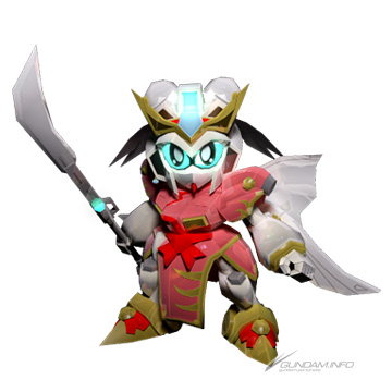 From SD Gundam Sangokuden Brave Battle Warriors. A mid-ranged unit, her Raikoto (Kenki) deals ranged damage while the Koeikyu inflicts control shock on nearby enemies, letting her regain distance. With damage-boosting skills, she's great for aggressive play.
