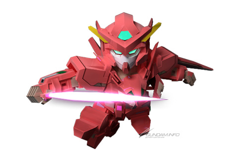 A mobile suit from Mobile Suit Gundam 00F. Its GN Launcher fires a broad beam ideal for midrange fights. Mobility Up and Blitz Tactics both give it a speed edge in close combat. Its GN Beam Saber Melee Combo lets it fend off enemies who try to get too close.