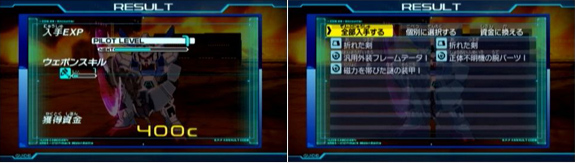 Once the mission's over, you receive experience, credits, and parts. Credits and parts can be used to enhance and customize your mobile suit.