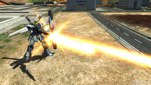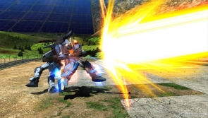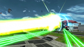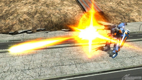 ▲特殊射撃武装「ハモニカ砲 (照射)」は、横幅の広いレーザーを照射。