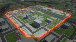 『機動戦士ガンダムUC』に登場する地球連邦軍の基地周辺の市街地で、開けた地形にいくつもの建物が並んでいるステージだ。