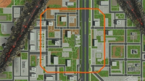 ▲ステージを分断するように道路が通っており、そこだけが周囲よりも一段高くなっている。破壊可能な建物を全て壊してしまえば、射線を遮る物がほぼなくなるので、建物の利用の仕方が重要になってくる。
