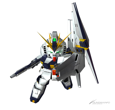 A mobile suit from Mobile Suit Gundam: Char's Counterattack. Before weapon swap, it's a ranged attacker focused around funnel use; after, it's an up-close battler relying on its beam saber. It can keep up a continuous saber assault dual-fisted, just like in the movie!