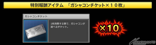 During the event, players who rank up to at least Private will receive ten Gashacon Tickets.