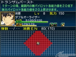 ▲ 00 Raiser activates Transam Burst. It reduces all enemy stats by 20!