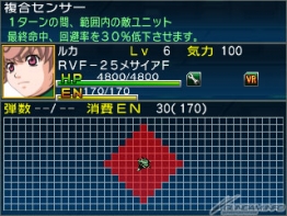 ▲ The RVF-25 Messaih (F)'s Compound Sensors reduce enemy hit and evasion.
