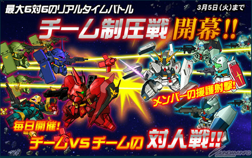 バンダイナムコオンラインが「Yahoo!ゲーム」にて提供中の基本無料ブラウザゲーム「SDガンダムオペレーションズ」では、本日2月27日(水)より「チーム制圧戦(本戦)」がスタート。