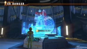 ▲ Start out in the VR Hangar. Walk around as your avatar, accept a mission, and then launch controlling your very own Gunpla!