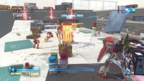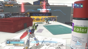 ▲ During the main stage, fight through a Gunpla workshop, scaling a table as high as any mountain! In this stage, you'll be defendin an objective.