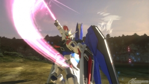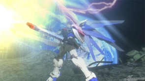 The HiMAT Full Burst tears through enemy lines! The sword descends on the battlefield... Its name, Freedom Gundam!