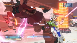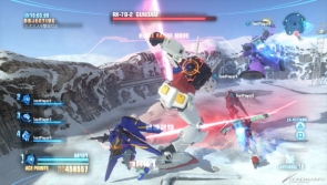 ▲ With your friends along, you've got a chance against the gigantic Gundam! Hack away up close with a Heat Hawk, add in some cover fire, and split up roles to grasp victory!