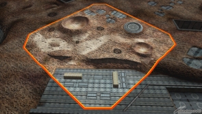 This cratered, sloping stage makes distant fire difficult and surprise attacks easy.