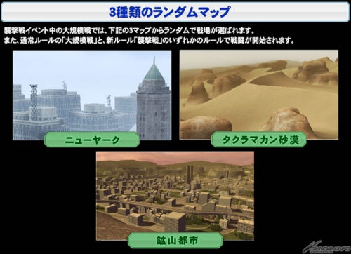 ▲襲撃戦イベント中は、ニューヤーク、タクラマカン砂漠、鉱山都市の3マップがランダムで出現する予定。