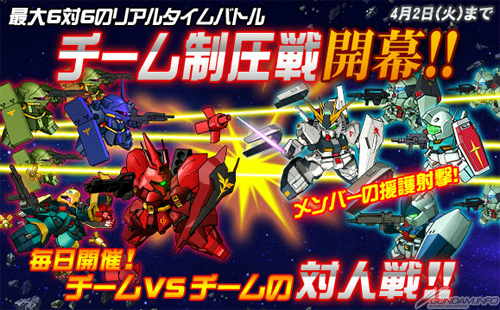 バンダイナムコオンラインが「Yahoo!ゲーム」にて提供中の基本無料ブラウザゲーム「SDガンダムオペレーションズ」では、本日3月27日(水)より第3回「チーム制圧戦」が開幕。さらに「ガンダムバトルコロシアム」と「獲得PPアップキャンペーン」もスタートした。