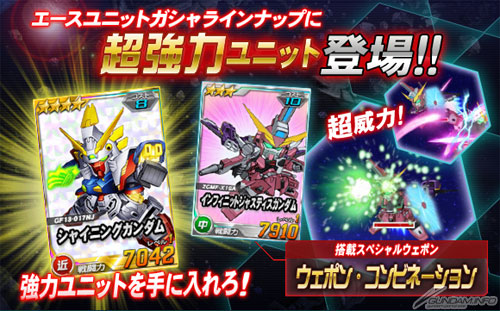 Also at noon, the Ace Unit Gasha will gain a four-star Shining Gundam, three-star Infinite Justice Gundam, and more.