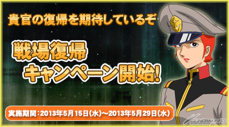 バンダイナムコオンラインより好評サービス中のWindows専用オンラインゲーム「機動戦士ガンダムオンライン」では、本日5月15日(水)より「戦線復帰キャンペーン」がスタート。