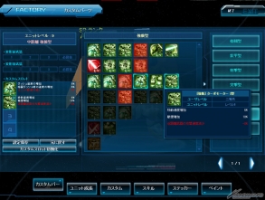 予め決められた属性による役割分担でなく、プレイヤー自身の創意工夫によるユニット個性化など、「カスタムパーツ」によって実現する新しいプレイフィールを楽しもう。