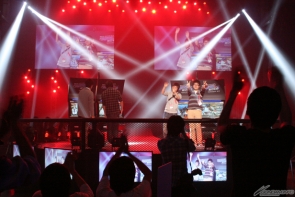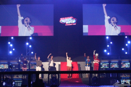 好評稼働中のアーケードゲーム「機動戦士ガンダム エクストリームバーサス フルブースト」の全国No.1チームを決める大会「PREMIUM DOGFIGHT 2013決勝大会」が、5月25日(土)にディファ有明にて開催された。