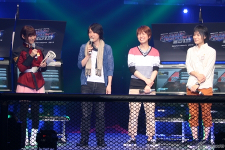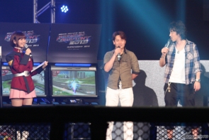 さらに、声優の神谷浩史氏、鈴村健一氏、岡本信彦氏など豪華ゲストを迎えての「バトルトークショー」や、注目の「EXVS.FB」最新情報のお披露目など盛りだくさんの内容となった。