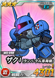 (右)「1周年総力戦敵ユニット」チャンスガシャ限定「ザクI(ランバ・ラル専用機)」