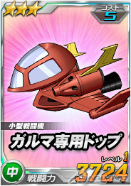 (左)「1周年総力戦敵ユニット」チャンスガシャ限定「ガルマ専用ドップ」