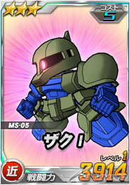 (右)「1周年総力戦敵ユニット」チャンスガシャ限定「ザクI」