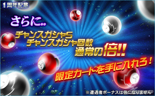 1周年を記念して期間中はチャンスガシャSを引ける回数が2倍に!