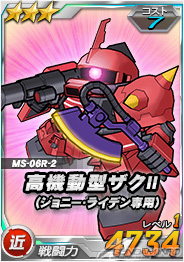 (左)超総力戦チャンスガシャ限定「高機動型ザクII(ジョニー・ライデン専用)」