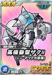 (右)超総力戦チャンスガシャ限定「高機動型ザクII(シン・マツナガ専用)」