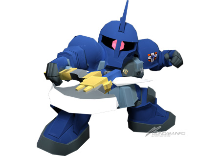 『機動戦士ガンダム0083 STARDUST MEMORY』に登場。長距離の武器3「試作型ビーム・ライフル」にはスタンの効果があるので、中距離のビーム・ライフルと併用して相手のHPを地道に削っていく戦い方が有効。スキル2「ジオンの魂」には味方全機の攻撃力を引き上げる効果があるため、発動後は粘り強く戦って、スキルの効果を維持したいところだ。