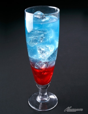 コラボ企画オリジナルカクテルとなる「連邦とジオンの境界線」は、ジンをベースに連邦の青をブルーキュラソー、ジオンの赤をブラッドオレンジで「境界線」を表現。目を引く鮮やかな色あいで、爽やかな風味となっている。