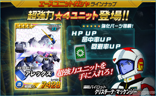 さらにエースユニットガシャには、「★4 アレックス」を含む超強力なユニットが新たに3機追加される。