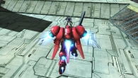 ▲特殊格闘では敵に向かって「急速接近」を仕掛ける。レバー入力によって軌道が変化し、レバーNでは敵に向かって直進(画像左)、レバー横では斜め方向に移動(画像中央)、レバー後では上昇しながら移動する(画像右)。さらに、特殊格闘中に射撃ボタンを押すと後退しながらビーム・マシンガンを発射する