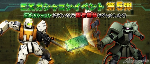 実装に伴い新エース機体として「ブルーディスティニー1号機」(パイロット:ユウ・カジマ)と「イフリート改」(パイロット:ニムバス・シュターゼン)が登場。さらに「EXガシャコンイベント第5弾」も本日よりスタートした。